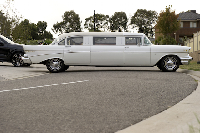 You don’t have to wait until you’re rich and famous to travel in style. With classy and luxurious 1957 Chevrolet Stretch Limousine hire to transport you to your debutante ball, school formal or wedding is a chance to feel like an A-list celebrity for a few hours. And, for those who love the trappings of fame and fortune and dare to be more than a little bit different, we have something that’s even better than the traditional stretch limousine – our 1957 Chevrolet Stretch Limousine that has been lovingly and carefully stretched.